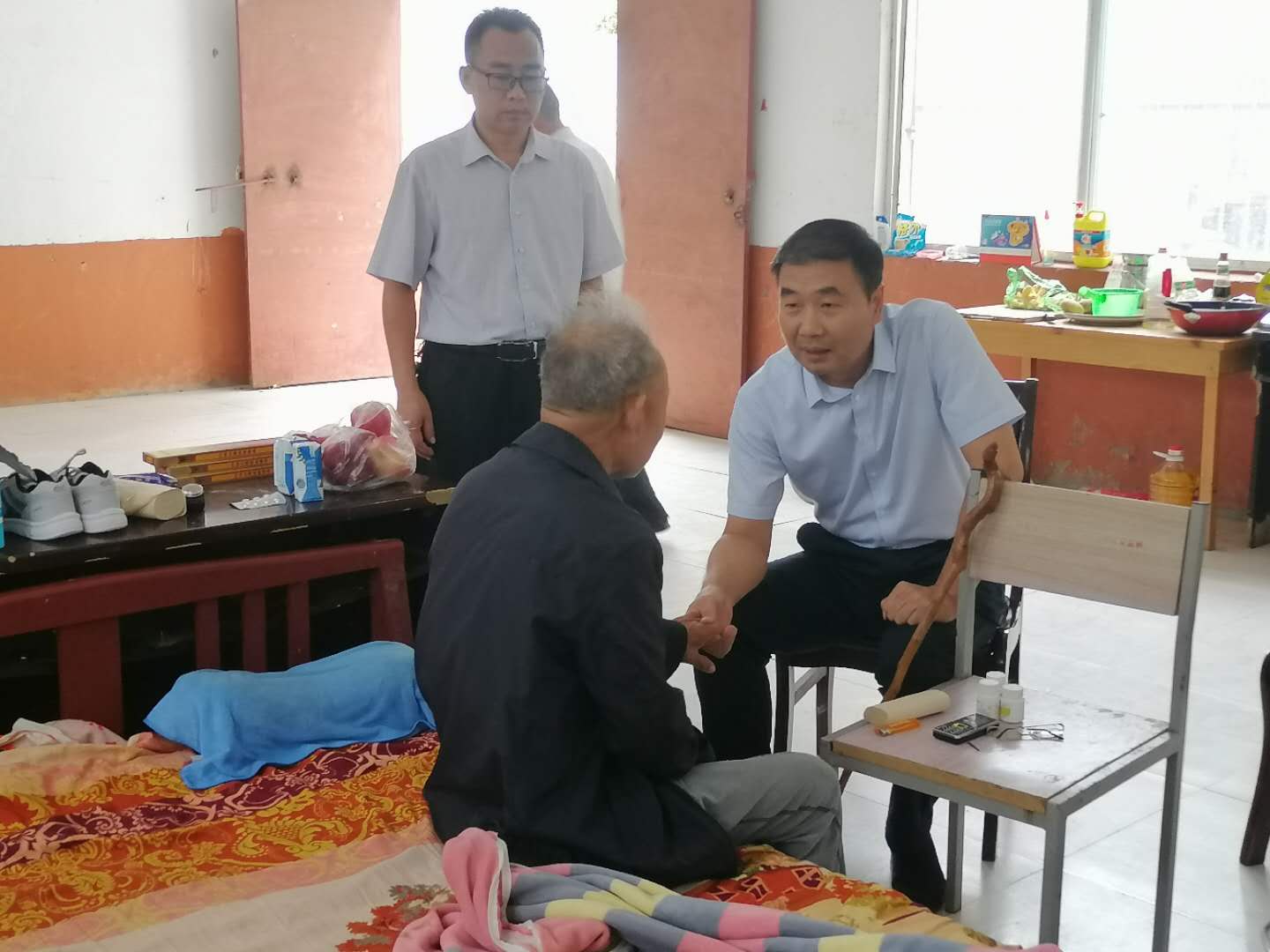 當(dāng)日16時,在三李村村室旁邊的一間房屋內(nèi),孔陽一見到坐在床頭的張殿運(yùn),就緊緊拉住他的手,詳細(xì)詢問老人吃的什么藥、效果怎么樣、身體恢復(fù)得如何?他叮囑老人:“你保重好身體就是對兒子工作的支持,也是對商水縣扶貧工作的支持。”張殿運(yùn)說話困難,表達(dá)不清,嘴唇顫抖半天也說不出一句話,只是緊緊地握住孔陽的手。得知老人在鹿邑縣宋河鎮(zhèn)農(nóng)村當(dāng)村干部30多年,孔陽稱贊他為黨為民工作一輩子,是好樣的。