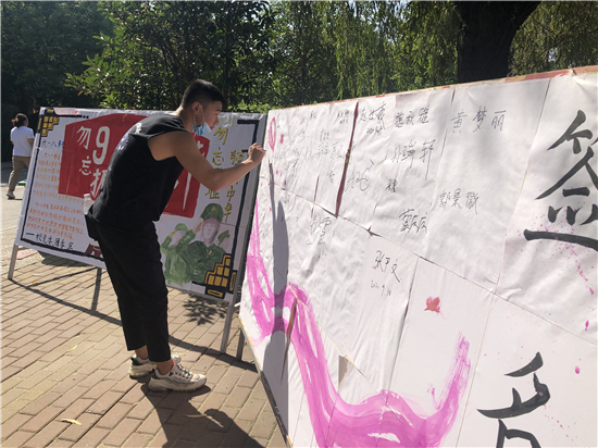 記者在河南科技職業(yè)大學(xué)看到,學(xué)校團(tuán)委組織各學(xué)院團(tuán)總支開(kāi)展“銘記九一八勿忘國(guó)恥”主題團(tuán)日活動(dòng),各級(jí)團(tuán)組織通過(guò)主題教育班會(huì)、簽名儀式等活動(dòng)重溫“九一八”歷史事件。河南科技職業(yè)大學(xué)團(tuán)委副書(shū)記劉曉娜表示,通過(guò)回顧這段歷史,同學(xué)們深刻體悟到了中華民族曾經(jīng)經(jīng)受的苦難和今天幸福生活的來(lái)之不易,以此激發(fā)同學(xué)們的責(zé)任感和愛(ài)國(guó)熱情,進(jìn)一步增強(qiáng)青年學(xué)子們的愛(ài)國(guó)主義意識(shí),讓大家銘記歷史,不忘初心、牢記使命,堅(jiān)定青年發(fā)奮圖強(qiáng)的理想信念,為實(shí)現(xiàn)中華民族偉大復(fù)興的中國(guó)夢(mèng)貢獻(xiàn)青春力量。