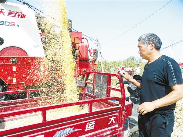 昨日上午,沈丘縣石槽集鄉(xiāng)涂樓村一訂單優(yōu)質(zhì)玉米生產(chǎn)基地內(nèi),村民正忙著機(jī)收玉米。連日來,該縣農(nóng)民滿懷豐收的喜悅,利用晴好天氣抓緊搶收玉米,力保秋糧顆粒歸倉。