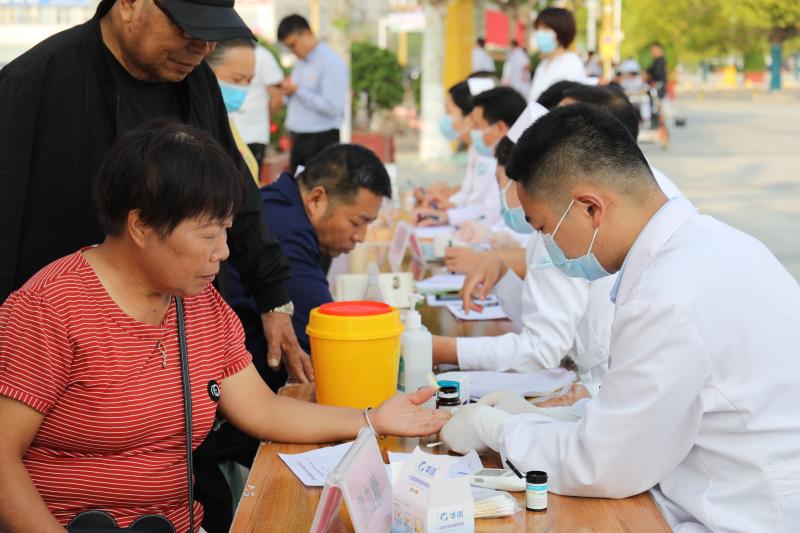 義診活動現(xiàn)場,通過懸掛主題宣傳橫幅、擺放健康知識宣傳展板、設置義診咨詢服務臺、發(fā)放健康促進宣傳折頁等方式為群眾進行健康知識宣教。前來咨詢就診的群眾絡繹不絕,醫(yī)務人員熱情地為群眾提供免費測量血壓、血糖等服務,耐心細致地解答群眾健康咨詢并給予診療建議,提醒平時多多加強鍛煉,注意健康飲食。