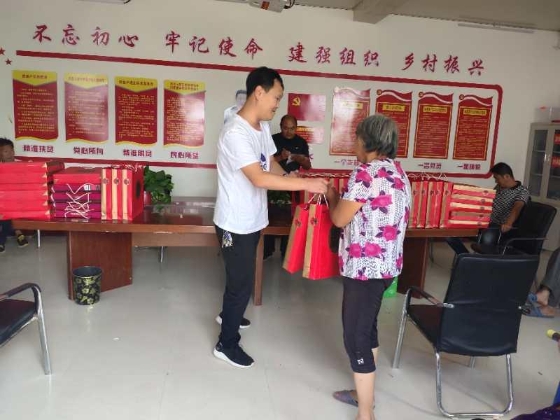 9月27日,淮陽區(qū)自然資源局駐劉振屯鄉(xiāng)耿樓行政村駐村第一書記莊騰騰與愛心企業(yè)一起走訪慰問村里的老黨員、貧困戶以及90歲以上高齡老人,向他們送去黨和政府的關(guān)懷與節(jié)日問候。慰問活動(dòng)共發(fā)放月餅100件。