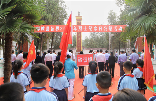 鄲城大地存浩氣,蒼松翠柏祭英烈。9月30日,鄲城縣在烈士陵園舉行2020年烈士紀(jì)念日公祭活動(dòng),市人大常委會(huì)副主任、鄲城縣委書記羅文閣,縣長李全林,縣人大常委會(huì)主任李建軍,縣政協(xié)主席王偉等縣四個(gè)班子領(lǐng)導(dǎo),全縣副處級(jí)以上領(lǐng)導(dǎo)干部,縣直各單位負(fù)責(zé)人,23個(gè)鄉(xiāng)鎮(zhèn)辦負(fù)責(zé)人,退役軍人代表、師生代表和社會(huì)各界人士,一同祭奠革命先烈,激勵(lì)全縣上下不忘初心、牢記使命,為鄲城縣高質(zhì)量發(fā)展而不懈奮斗。