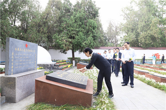 羅文閣緩步上前,代表縣四個(gè)班子仔細(xì)整理緞帶。全體人員面向烈士紀(jì)念碑行三鞠躬禮,并深情瞻仰烈士陵園,向英雄烈士獻(xiàn)上鮮花,表達(dá)對(duì)烈士的無限敬仰和哀思。①15