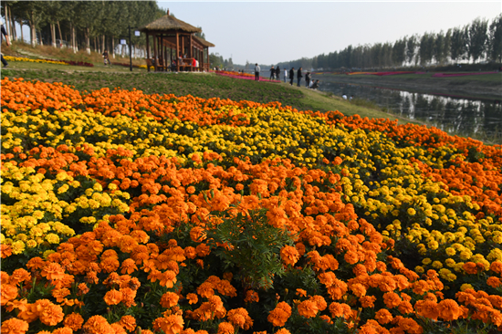 10月20日,市民在商水縣高標準農(nóng)田灌溉渠兩岸游玩。