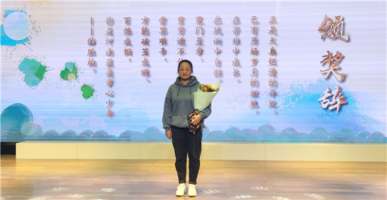 “我一定會(huì)珍惜榮譽(yù)、再接再厲,直面困難戰(zhàn)勝困難。我以后要好好學(xué)習(xí),考上自己心儀的師范大學(xué),做一名老師,像我的老師那樣,教育學(xué)生、傳授知識(shí),讓更多的孩子放飛夢(mèng)想?!毖匍f,自己的成長(zhǎng)離不開組委會(huì)的關(guān)愛和老師們的關(guān)懷,對(duì)他們表示深深感謝。