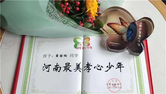 “正是天真爛漫的年紀(jì),已有歷經(jīng)歲月的坦然。在苦難中成長(zhǎng),在風(fēng)雨中自強(qiáng)。寒門至孝,貧窮遮不住你內(nèi)心的光芒。嘗罷艱辛,方能破繭成蝶、百煉成鋼。你是‘河南最美孝心少年’——薛勝楠。”這是組委會(huì)給薛勝楠的頒獎(jiǎng)詞。