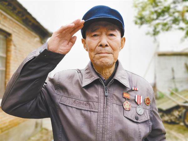 聽說記者要為他照相,老人立即要求家人為他換身干凈的衣服,很認真地把軍功章、獎?wù)乱灰淮髟谏砩希p腿合攏,努力地挺直上身,對著鏡頭打了一個標準的敬禮。