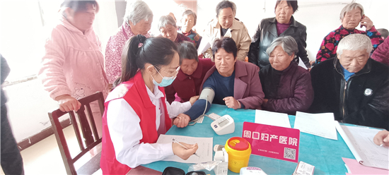 2020年第11個(gè)全國“敬老月”和第八個(gè)“老年節(jié)”,團(tuán)市委聯(lián)合周口婦產(chǎn)醫(yī)院走進(jìn)西華縣李方口村開展敬老愛心義診活動(dòng)。圖為義診現(xiàn)場。(記者 馬月紅 攝)