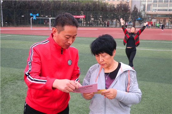活動中,志愿者們向晨練的群眾發(fā)放健康運動提示卡、防范電信詐騙、掃黑除惡、不動產(chǎn)登記等方面的宣傳材料,免費派發(fā)“愛心粥券”;細心講解老年人常見的十大心理、常見病的預防等強身健體保健常識,引導群眾合法應對“保健品大促銷”、“集資詐騙”等典型詐騙行為;倡導老年人多了解法律知識,以提高識別詐騙、自我維權的能力。同時,志愿者們主動拾撿體育場內(nèi)的樹葉、雜物等,為晨練群眾創(chuàng)造干凈衛(wèi)生的健身環(huán)境,深受群眾喜愛和稱贊。