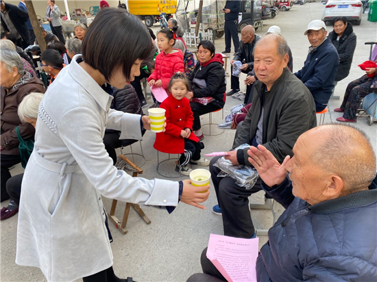 活動現(xiàn)場熱鬧非凡,小橋街道辦黨工委書記侯明亮、主任王靜、人大工委主任張萬勝等為在場群眾發(fā)放了“敬老倡議書”,與大家共同品鑒菊花茶。同時,侯明亮為大家講述了重陽節(jié)的由來、傳說、習俗等傳統(tǒng)知識。大家為在場老人送上了精心準備的帽子、棉拖鞋、棉坐墊等小禮品,獻上了佳節(jié)祝福,讓老人們感受黨和政府的溫暖及濃濃的節(jié)日氣氛,讓德孝之風成為普遍共識和自覺行動。