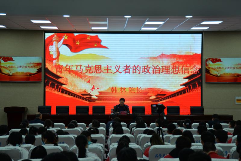 開班儀式結(jié)束后,周口技師學院院長韓林以《青年馬克思主義者的政治理念信念》為題,為學員們上了第一課。