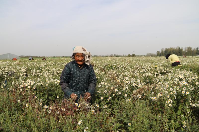 原來(lái),菊花田的老板叫晉振中,于2018年從全縣脫貧攻堅(jiān)種植信息渠道得知種菊花能致富,銷售的末端是安徽亳州的藥材市場(chǎng)和一些花茶商家。特別是種植方式和平原種植紅薯一樣,把田地打成壟,栽苗、施肥、澆水、除草,9月份采摘一次、11月份采摘一次,剩下的菊花秸稈粉碎到田間作為肥料,還能種植晚小麥,十分方便。于是,他通過(guò)鎮(zhèn)村兩級(jí)黨員干部協(xié)助流轉(zhuǎn)了100畝土地,2019年就掙了20多萬(wàn)元。由于晉菜園村是貧困村,在他的菊花田務(wù)工的勞動(dòng)力大多是貧困戶,能帶動(dòng)近百戶貧困戶脫貧致富,晉振中欣慰地覺得自己為脫貧攻堅(jiān)做了一份大貢獻(xiàn)。