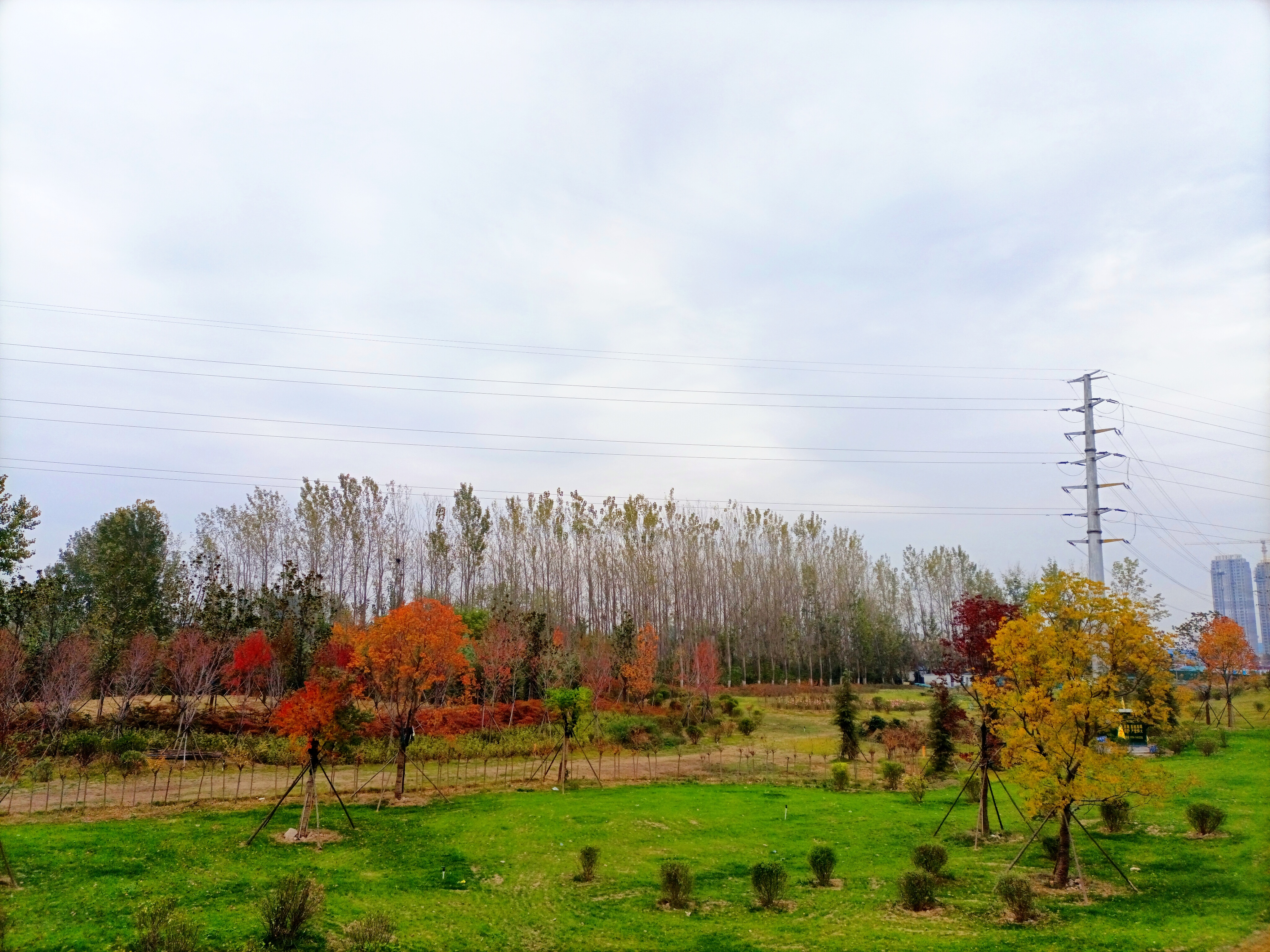 深秋時節(jié)天漸涼,滿目綠色稍染黃。沙潁河畔秋光美,游人垂釣劃舟忙。