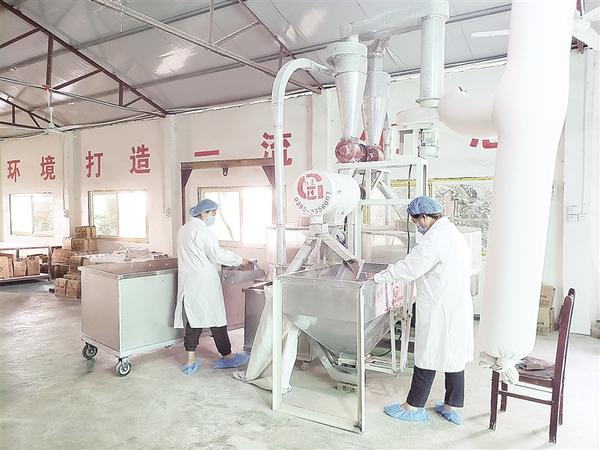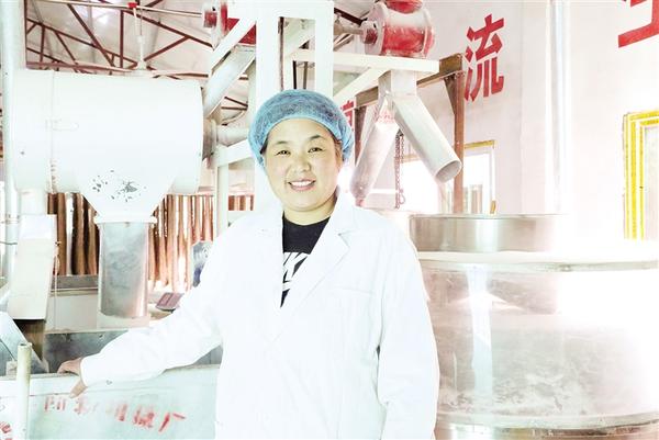 喜俊喜家庭農(nóng)場總經(jīng)理王春麗在黑小麥面粉生產(chǎn)車間。