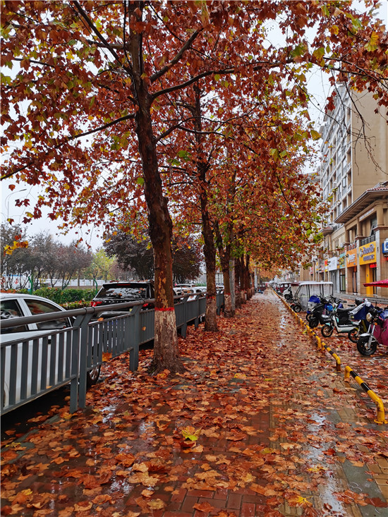 連日來,周口迎來立冬后的首場降雨,雨打落葉,滿地枯黃,雨中的街頭別有一番韻味。從17日起,周口會持續(xù)降雨,18日早上一場大雨后,氣溫明顯降低,出門的朋友可要做好保暖、帶好雨具。②9