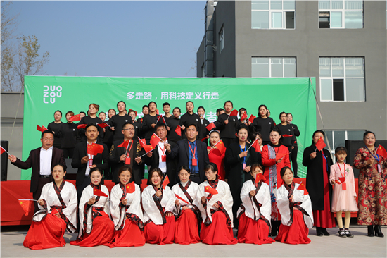 書院翰墨香,工廠生產(chǎn)忙。縣書法家協(xié)會主席韓文甫引筆奮力現(xiàn)場揮毫,一副古樸典雅的隸書“多走路 用科技定義行走”如清風(fēng)出袖,明月入懷,贏得現(xiàn)場觀眾一片贊嘆。