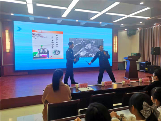 課堂上, 公安民警用鮮活的案例剖析青少年違法犯罪的心理軌跡,讓同學(xué)們做遵紀守法好學(xué)生。民警們解讀了社會主義核心價值觀基本內(nèi)涵和具體要求,教育同學(xué)們要愛黨愛國愛校園愛學(xué)習(xí),做人誠信,做事友善。民警們還教會學(xué)生們?nèi)绾巫R別毒品,認識毒品危害,做到拒絕、遠離毒品,爭當禁毒小小宣傳員。對如何防范被刀棍傷害,民警們演示了書包板凳防護法。③5