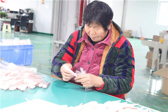 11月25日,家住鹿邑縣張店鎮(zhèn)劉莊村的孫小懶像往常一樣,吃過早餐后就到村里的河南雅彩美妝用具有限公司套管車間上班?!斑M廠務(wù)工一人,穩(wěn)定致富一家”這句話正是孫小懶家的真實寫照。前幾年,孫小懶的丈夫因病去世后,撇下三個兒子,最大的今年讀高中,最小的還在讀小學(xué),主要勞動力的缺失讓孫小懶一家人的生活陷入困境。