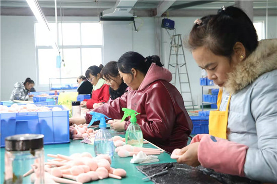 2014年,孫小懶家被列入建檔立卡貧困戶。孫小懶一人帶著三個孩子,不能出遠門務(wù)工,只能守著二畝薄田種些莊稼度日。今年初冬,家門口的河南雅彩美妝用具有限公司開工,孫小懶是第一批主動報名的員工。經(jīng)過崗前培訓(xùn),她正式上崗,主要負責(zé)化妝刷的套管工作,一個月能掙3000多元?!坝嫾べY,干得多就掙得多。等技術(shù)更加熟練后,工資還會上漲,以后的日子會越來越紅火。”孫小懶樂呵呵地說。