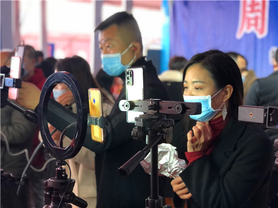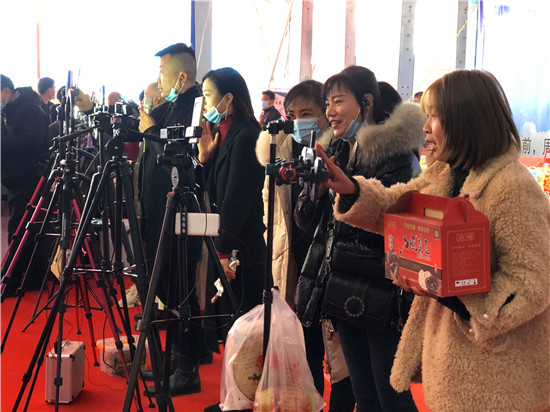 28日早上7時(shí)許,周口網(wǎng)紅俱樂(lè)部的網(wǎng)紅們和工作人員就開(kāi)始為今天的直播做準(zhǔn)備,早早把直播設(shè)備搬到現(xiàn)場(chǎng),進(jìn)行調(diào)試。10時(shí)左右,周商產(chǎn)品展示展覽活動(dòng)現(xiàn)場(chǎng)人頭攢動(dòng),熱鬧非凡,來(lái)自周口本地的9位網(wǎng)紅們陸續(xù)架好手機(jī)直播設(shè)備,打開(kāi)補(bǔ)光燈,開(kāi)始直播?,F(xiàn)場(chǎng)的9位網(wǎng)紅各有特色,有打扮時(shí)髦的美女主播,有歌聲出眾的中年大叔,年齡最大的網(wǎng)紅是今年65歲的鹿邑大爺。網(wǎng)紅們一手拿著周口的蜂蜜、空心掛面、麻花、粉條、醬豆等土特產(chǎn),一邊對(duì)著手機(jī)屏幕里的粉絲熱情地展示和介紹起來(lái),有的還直接進(jìn)行現(xiàn)場(chǎng)吃播,不時(shí)與網(wǎng)友進(jìn)行唱歌、聊天互動(dòng),吸引了不少行人前來(lái)觀看?!霸瓉?lái)在抖音上看過(guò)網(wǎng)紅帶貨,但沒(méi)見(jiàn)過(guò)真人, 今天終于見(jiàn)到真實(shí)的網(wǎng)紅了!感覺(jué)很有意思!”前來(lái)觀展的市民劉女士說(shuō)。