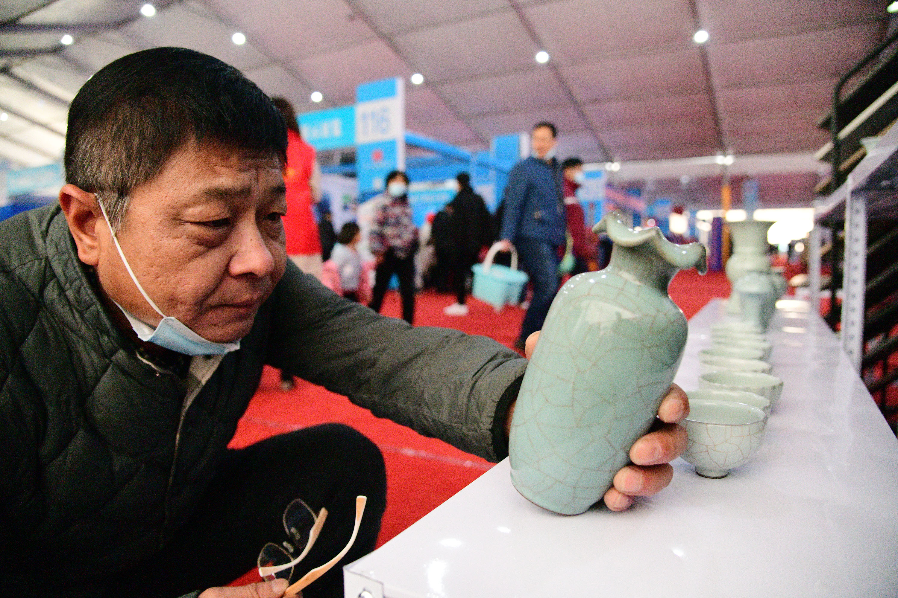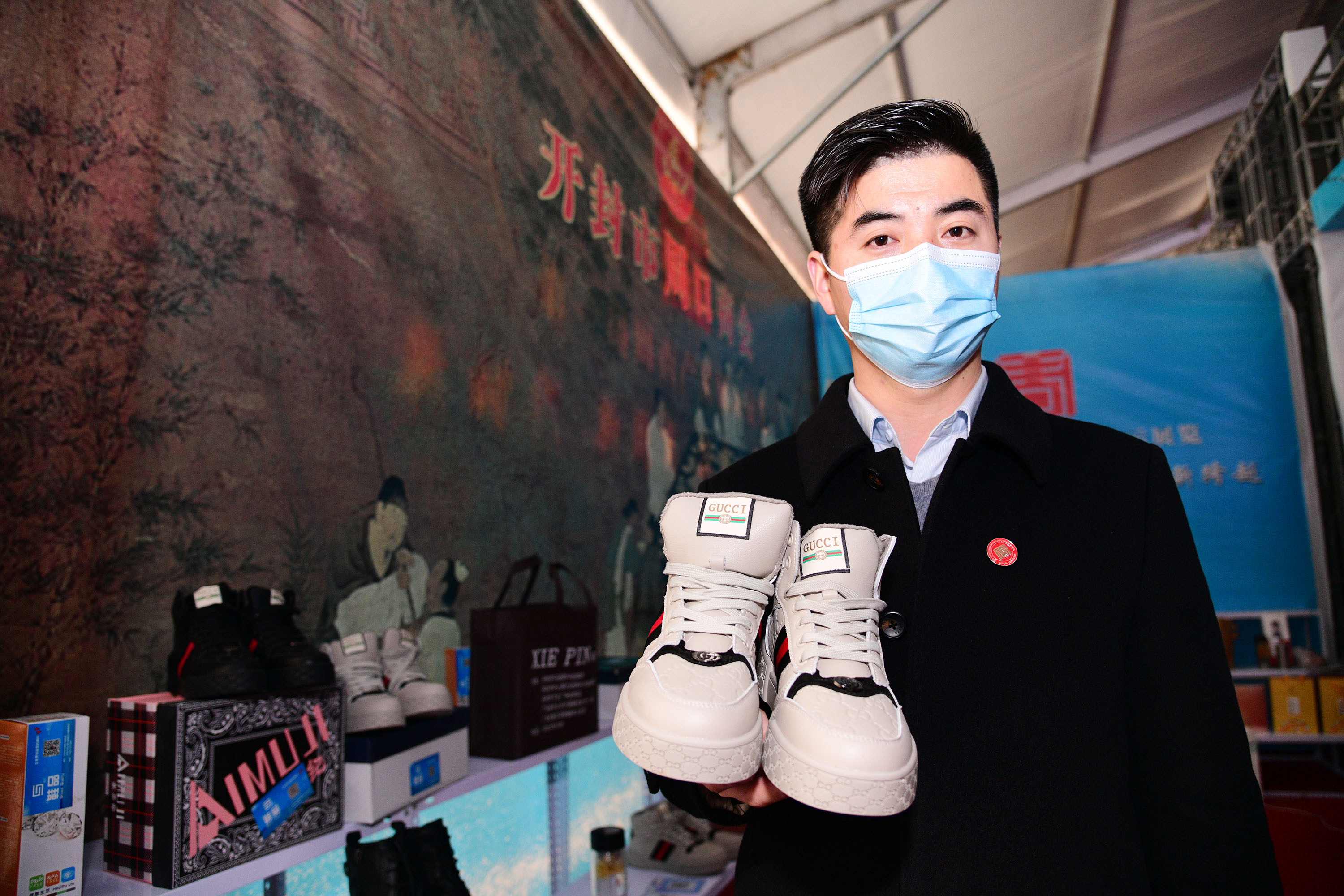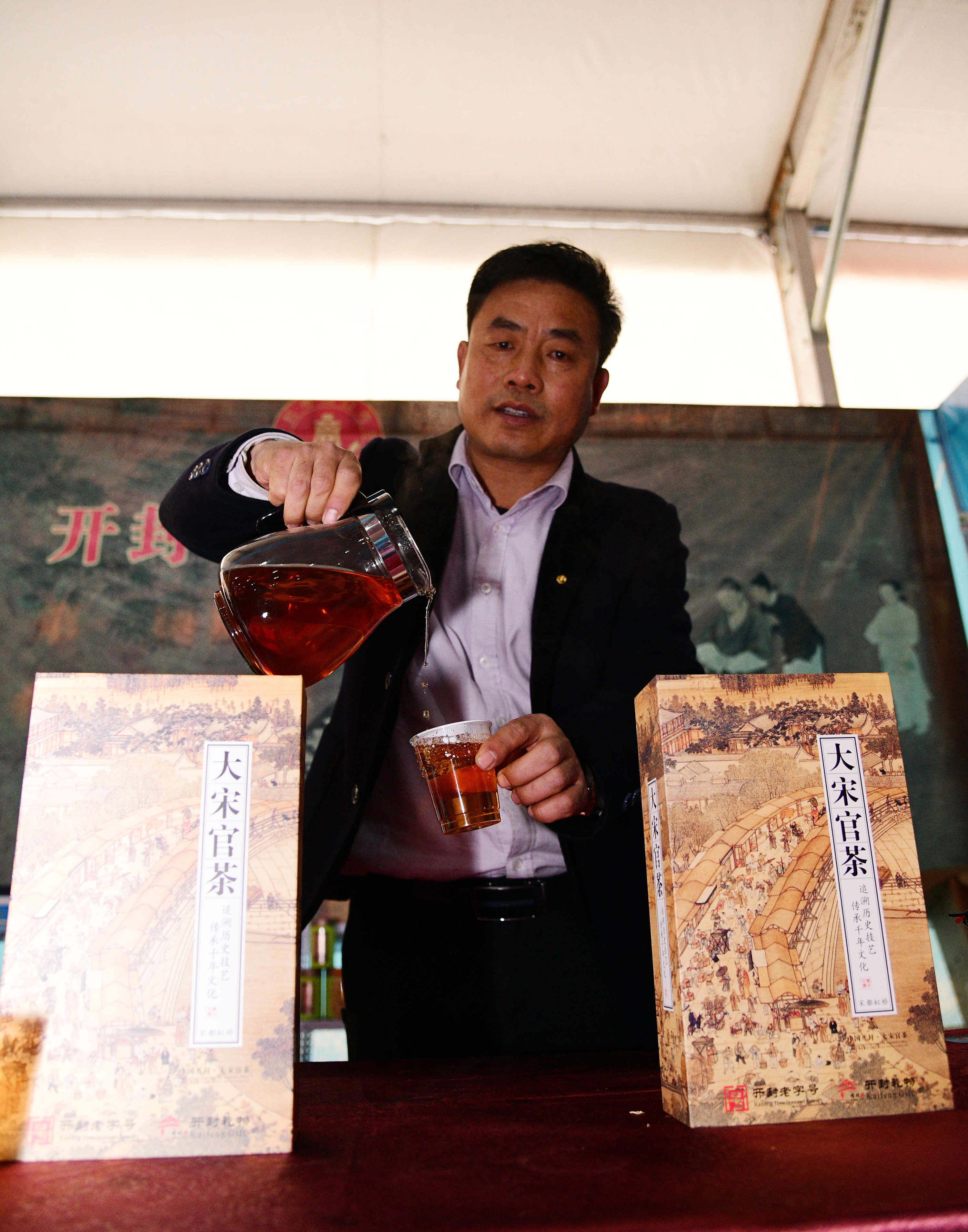 在展會上給顧客講述大宋官瓷品相的董俊,也是很厲害的周口企業(yè)家,能夠把開封老字號的官瓷,運(yùn)營得風(fēng)生水起,大宋官瓷瓷器和汴繡被譽(yù)為七朝古都象征性的物產(chǎn),還有大宋官茶,含有被譽(yù)為茶中黃金的“金花菌”,是“河南老字號”、“非物質(zhì)文化遺產(chǎn)”,也被選入“首屆開封禮物”。大宋官茶源于宋神宗(公元1068年),它今天的主人是淮陽區(qū)新站籍企業(yè)家牛華麗,這位淮陽籍漢子從小在開封長大,對大宋官茶獨(dú)有情種,現(xiàn)在是大宋官茶掌舵人,是大宋官茶非遺傳承人。而福興齋桶子雞老總馬勇是沈丘人,這是開封的名吃,去開封旅游,吃桶子雞和小籠包,成為游客必須品嘗的美味。馬勇參加周商大會帶回周口的桶子雞深受家鄉(xiāng)人的喜歡,一直熱賣。而“鞋品”鞋的老總侯建峰是鄲城人,他在廣州設(shè)有代加工廠,鞋子以河南為主要市場,在開封城由五個(gè)專賣店,同時(shí)也銷往全國。
