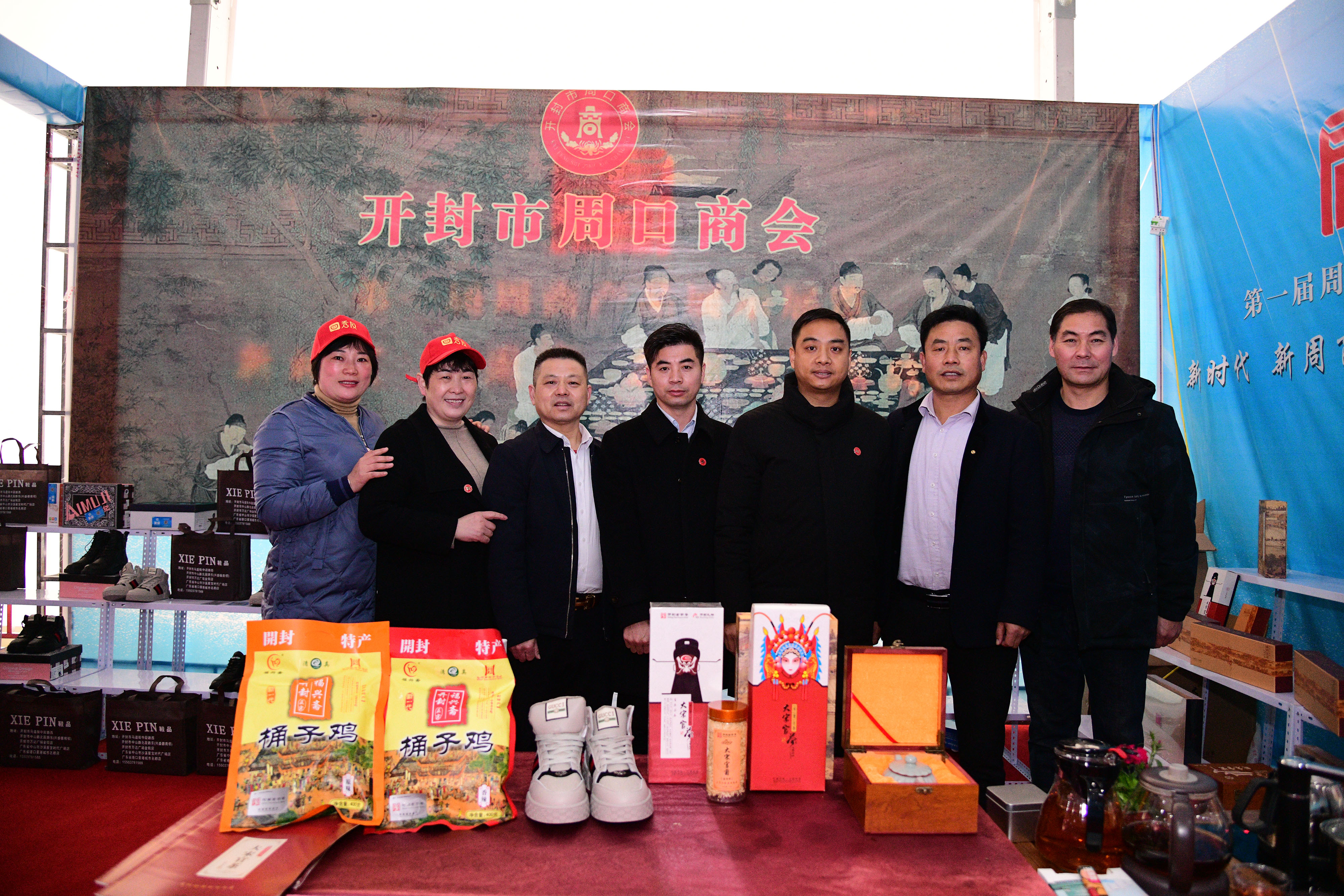 11月29日,在首屆周商大會上,在第126展位上,開封市周口商會派出六位代表齊聚這里,帶著深耕開封城多少年的成果,意氣風(fēng)發(fā)地向家鄉(xiāng)展示他們的風(fēng)采。他們分別是“大宋官茶”老總牛華麗,“大宋官瓷”老總董俊 ,福興齋桶子雞老總馬勇 ,全屋家具定制工廠“葉林森品牌”的兩位老總之一的岳偉,“鞋品”鞋老總侯建峰,電商服務(wù)平臺“秀商時(shí)代”老總王俊華。他們代表開封市周口商會的194家企業(yè)代表,和家鄉(xiāng)人見面,平時(shí)他們身在開封,深耕商界,乘風(fēng)破浪,促進(jìn)了當(dāng)?shù)亟?jīng)濟(jì)繁榮,也為周口帶來財(cái)富。