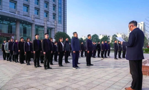 參加儀式的全體干部職工面向國旗莊嚴(yán)肅立、齊唱國歌,隨著國旗的徐徐上升,國家憲法日活動序幕由此展開。升旗儀式旨在激發(fā)干部職工學(xué)習(xí)憲法、維護(hù)憲法的熱情,厚植愛國情懷,以新面貌、新氣象、新作為砥礪前行。