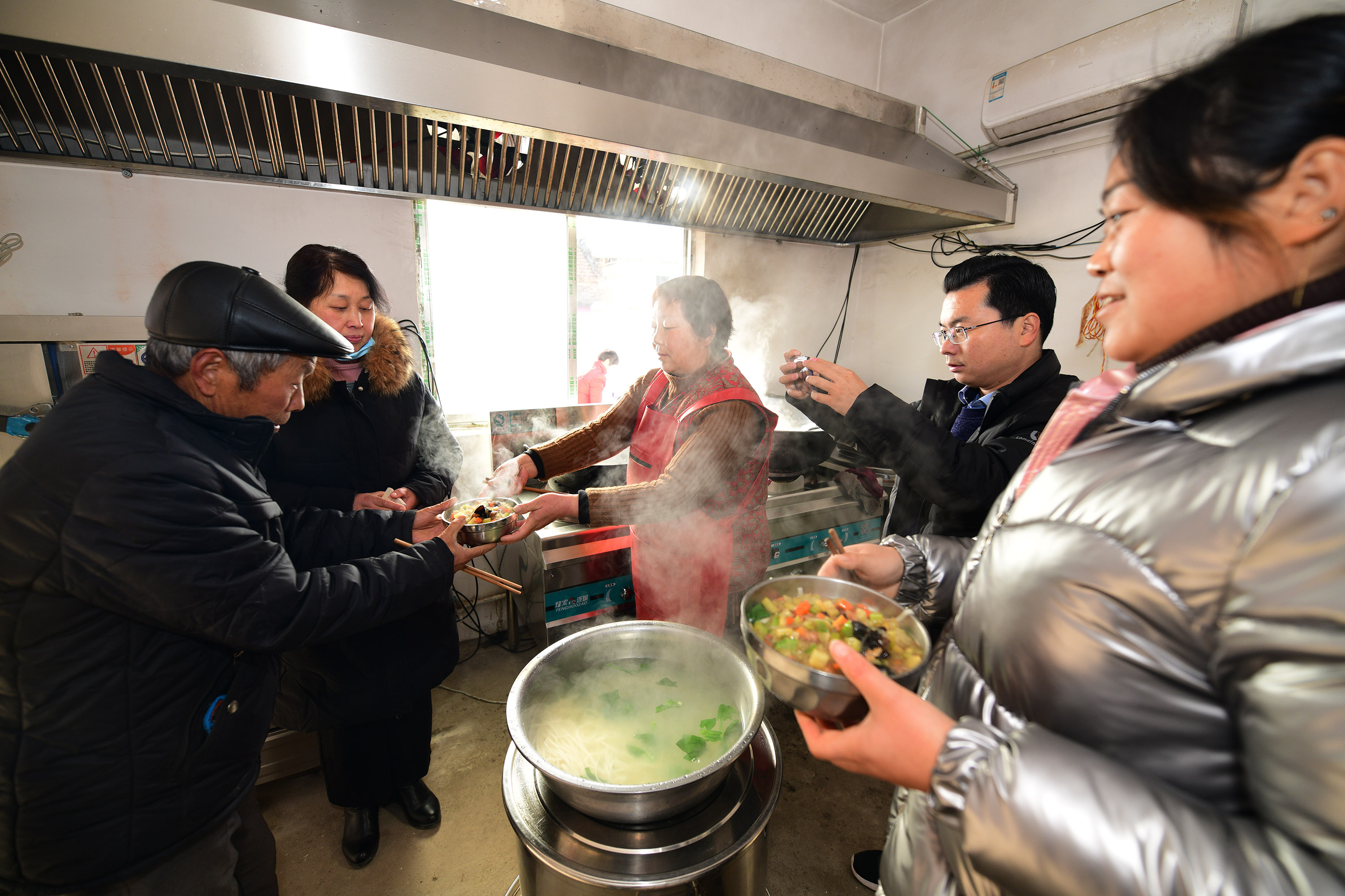“開飯嘍!”隨著一聲喊,十幾位老人走進炊煙裊裊、菜飯飄香的小院,拿著碗和積分卡,排隊打飯。這是12月15日中午,記者在西華縣奉母鎮(zhèn)七里倉二村看到村食堂開飯的場景。老人每人一碗臊子面,吃得渾身熱乎乎的。這一勺飯,讓這里的老人長壽幸福,從此不再怕風雨不再畏嚴寒。這一勺飯,是七里倉二村今年實施土地治理后的村集體公糧,也是實施土地承包制40年來村集體里的首份余糧。