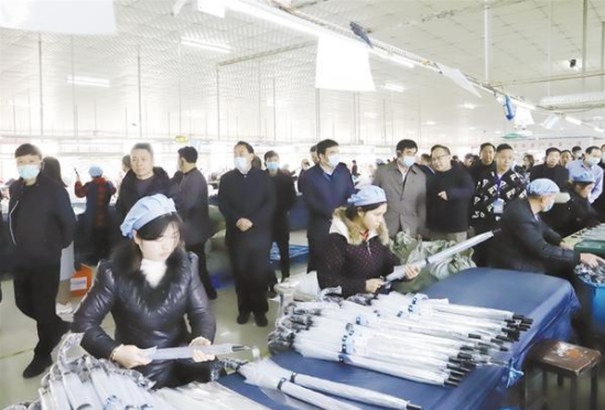 12月23日下午,在鄲城縣舉行的中國日用雜品工業(yè)協(xié)會(huì)制傘專業(yè)委員會(huì)五屆五次暨六屆一次會(huì)員代表大會(huì)中,來自全國制傘行業(yè)的精英們先后來到鄲城會(huì)客廳、傘業(yè)產(chǎn)業(yè)園、兄和家居、返鄉(xiāng)創(chuàng)業(yè)園、洺河森林樂園、鄲城一高、人民公園、體育場等地,實(shí)地感受鄲城高質(zhì)量發(fā)展成果和傘業(yè)發(fā)展?jié)摿?,共謀中國傘業(yè)的發(fā)展前景。 記者 徐松 攝