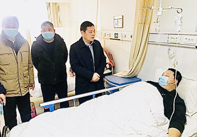 在醫(yī)院病房,陳鳳祥詳細(xì)了解朱樂(lè)樂(lè)的病情和治療情況,詢問(wèn)其家庭情況和生活狀況,表達(dá)了公安局黨委非常重視民警、輔警身體健康情況的心情,并送上慰問(wèn)金。同時(shí),叮囑朱樂(lè)樂(lè)要保持樂(lè)觀心態(tài),安心養(yǎng)病,爭(zhēng)取早日康復(fù),回到工作隊(duì)伍。