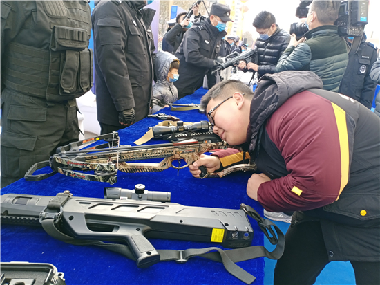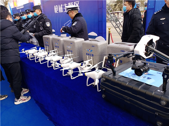 活動(dòng)現(xiàn)場設(shè)置了“反假幣主題區(qū)”“消防主題區(qū)”“防電詐主題區(qū)”“禁毒主題區(qū)”“互動(dòng)區(qū)”等形式多樣的功能展示區(qū),現(xiàn)場接受群眾咨詢,與市民深度互動(dòng),讓市民近距離體驗(yàn)、全面感受人民警察的日常工作。除此之外,民警還進(jìn)行了槍械展示、無人機(jī)展示等內(nèi)容。