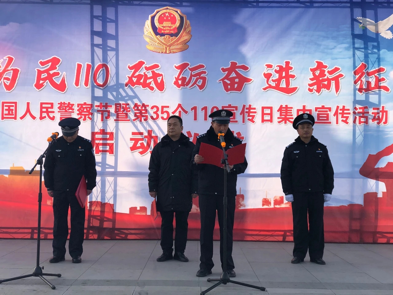 為慶祝首屆中國(guó)人民警察節(jié),迎接全國(guó)第35個(gè)“110宣傳日”,在全社會(huì)營(yíng)造濃厚宣傳氛圍。1月10日上午,鹿邑縣公安局在弘道苑廣場(chǎng)舉辦首屆人民警察節(jié)暨110宣傳日集中宣傳活動(dòng)。縣委常委、政法委書記張國(guó)慶,縣政府副縣長(zhǎng)、公安局長(zhǎng)任金瑞出席活動(dòng)并講話,縣局黨委委員、民警代表,12345公眾服務(wù)熱線、金融、電信、社會(huì)公益組織等單位參加。