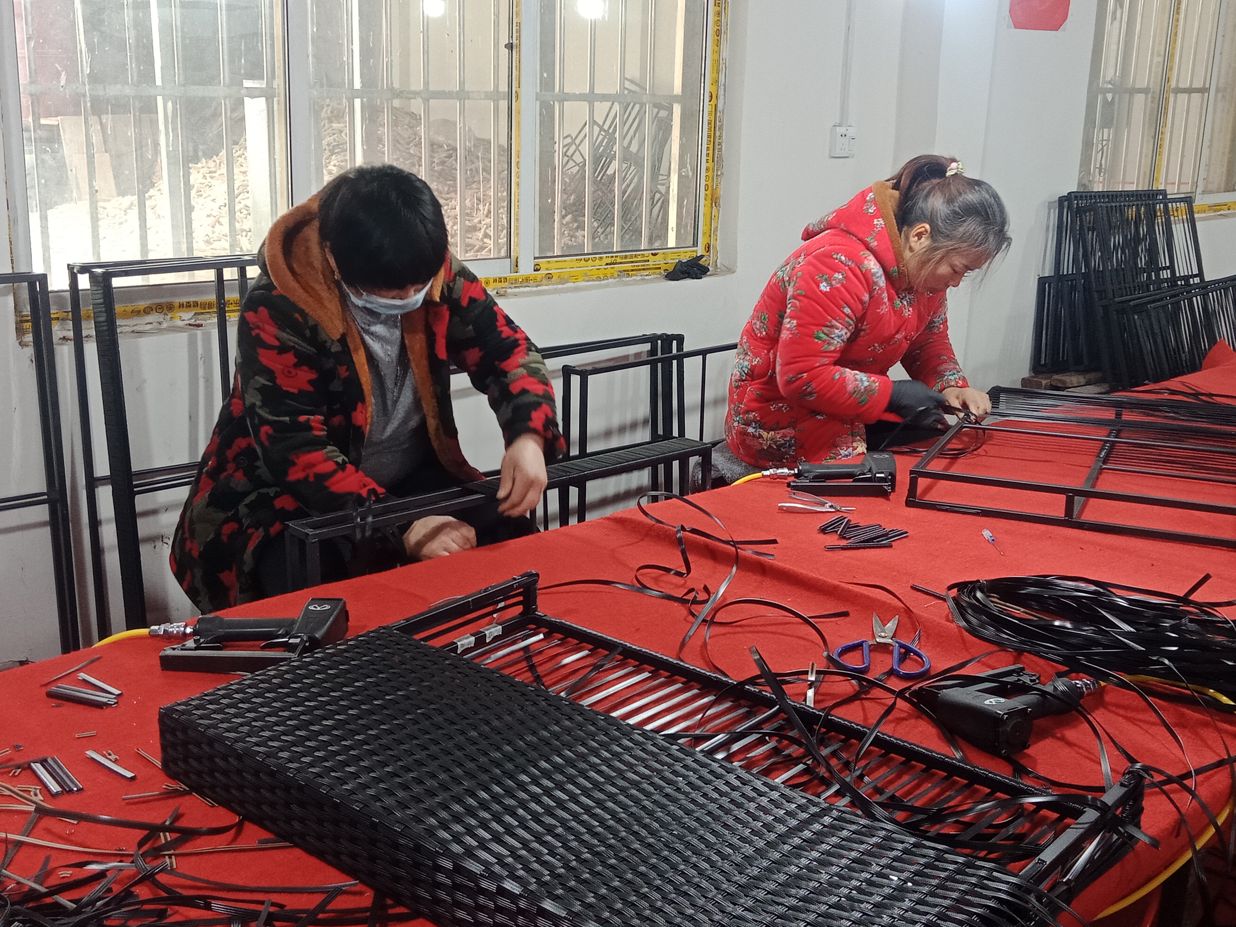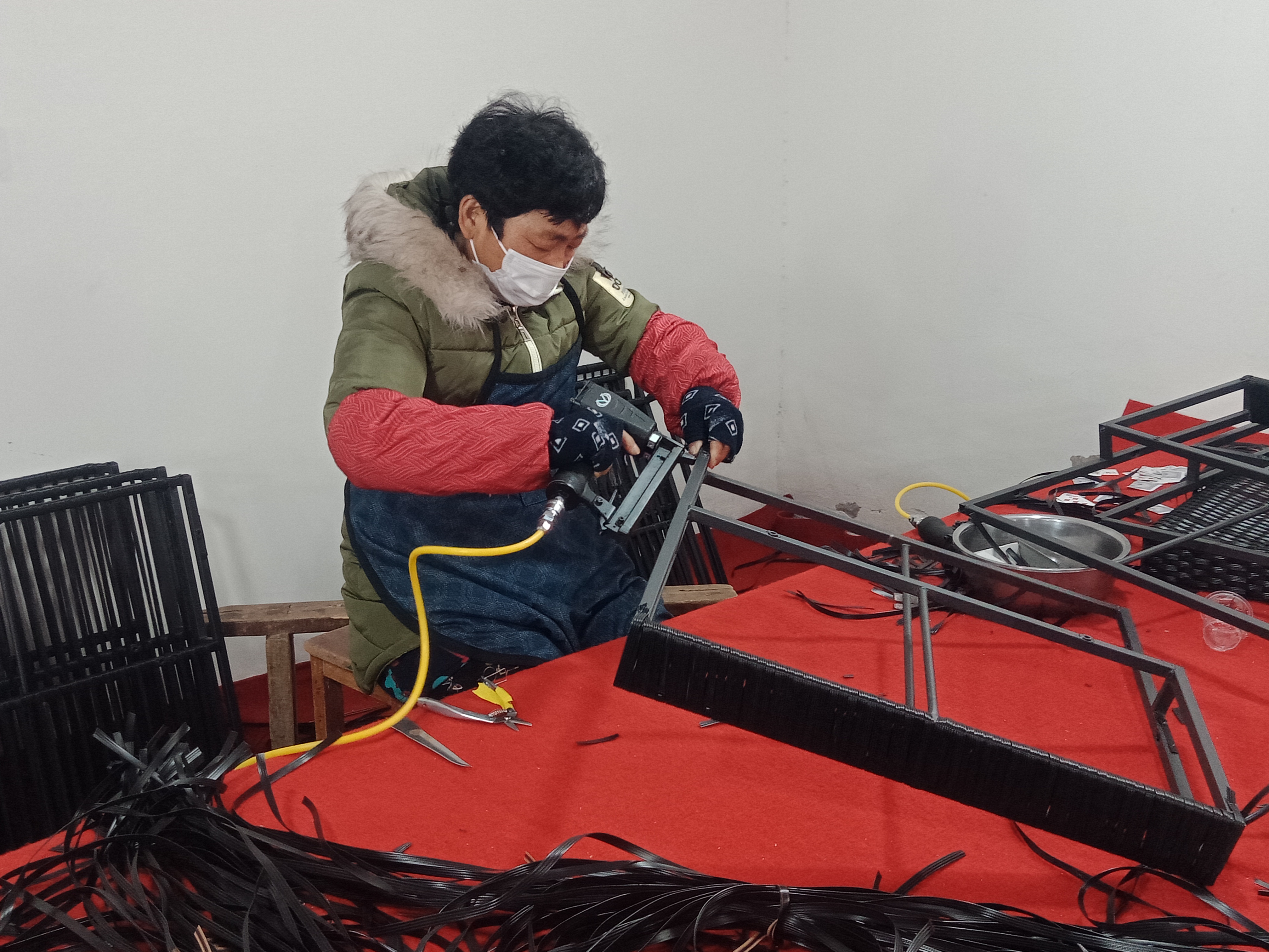 戶外藤編沙發(fā)巧媳婦工程加工車間是商水縣袁老鄉(xiāng)賈寨行政村村委為幫村民脫貧致富而引進的,生產為訂單作業(yè),產品多數(shù)銷往國外。該村加工車間是今年1月開工的。