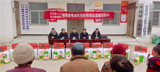 1月25日,扶溝縣人大常委會機(jī)關(guān)聯(lián)合愛心企業(yè),到扶溝縣包屯鎮(zhèn)譚崗行政村舉行愛心扶貧捐贈活動。