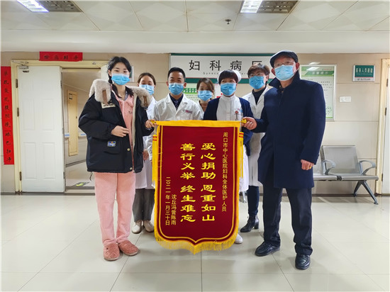 “劉醫(yī)生,謝謝您!”1月30日上午,在周口市中心醫(yī)院婦科病區(qū),做完胚胎橫紋肌肉瘤手術(shù)的小雨(化名)向醫(yī)護人員送上“愛心捐助 恩重如山 善行義舉 終身難忘”的錦旗。