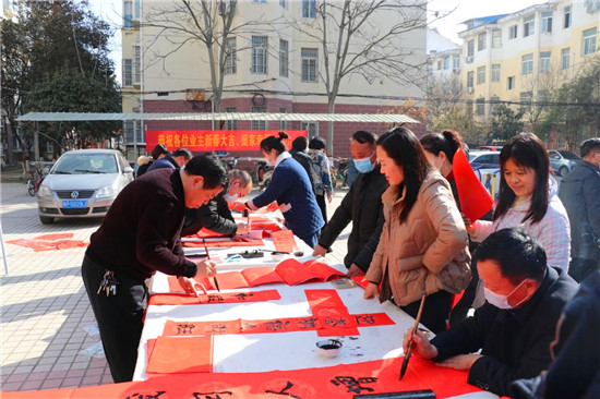 為增添節(jié)日氣氛,開啟喜迎新春的序幕,1月30日上午,鹿邑縣書法家協(xié)會(huì)組織書法家走進(jìn)谷陽(yáng)辦事處怡景花園小區(qū),開展為小區(qū)居民送福、送春聯(lián)義寫活動(dòng)。