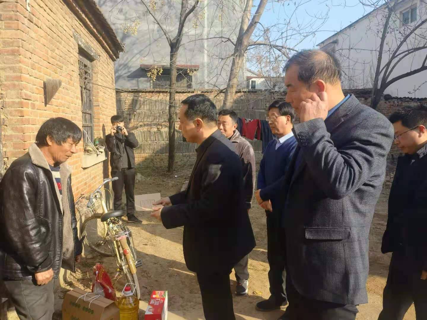 敢莊行政村困難群眾苑海軍腿腳不便,妻子雙目失明,一個女兒已經(jīng)出嫁,家庭經(jīng)濟困難。程若光在了解了苑海軍的家庭情況、身體狀況、生產(chǎn)生活問題后,問他們目前存在哪些困難,有什么事區(qū)里、鄉(xiāng)里急需幫助的。苑海軍說,鄉(xiāng)、村對他照顧得很好,他對黨和政府的關(guān)懷非常感謝!