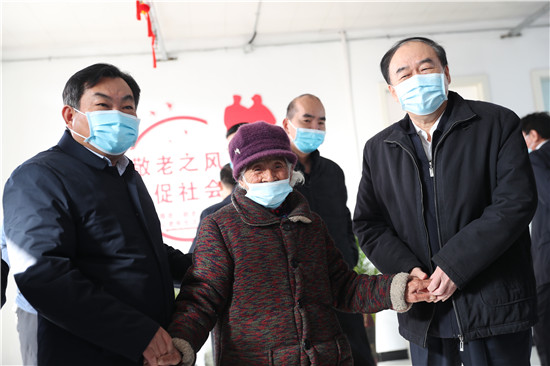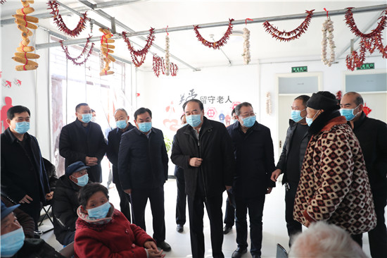 太康縣大許寨格花里行政村居村聯(lián)養(yǎng)點(diǎn)占地5畝,入住特困老人80余人,社會留守老人3人,老人們在這里有吃有穿還有娛樂活動(dòng),生活得十分幸福。徐濟(jì)超一行走進(jìn)大許寨鎮(zhèn)葛花李居村聯(lián)養(yǎng)點(diǎn),向老人們祝賀新春。徐濟(jì)超指出,各級各部門要始終堅(jiān)持以人民為中心的發(fā)展思想,踐行初心使命,聚焦群眾冷暖,用足用好惠民政策,千方百計(jì)幫助群眾解決實(shí)際問題,讓群眾老有所養(yǎng)、病有所醫(yī)、住有所居,讓大家共享改革發(fā)展成果,確保讓廣大群眾過個(gè)歡樂祥和的新春佳節(jié)。