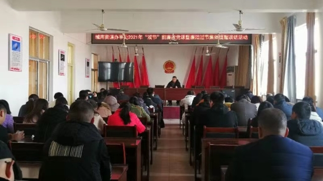 在春節(jié)、元宵節(jié)即將來臨之際,川匯區(qū)城南街道辦事處開展2021年“雙節(jié)”前廉政黨課暨廉潔過節(jié)集體談話活動,要求黨員干部增強(qiáng)廉潔自律意識、筑牢思想防線,確保過一個風(fēng)清氣正的“雙節(jié)”。