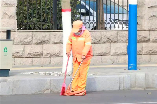 由于新冠肺炎疫情的原因,這個春節(jié)不同往常,環(huán)衛(wèi)工人們在搞好環(huán)衛(wèi)工作的同時,還要注意好疫情防控。當(dāng)日上午,記者看到,每一名環(huán)衛(wèi)工人不僅全時段佩戴口罩,也會時常提醒路人戴好口罩,注意安全。