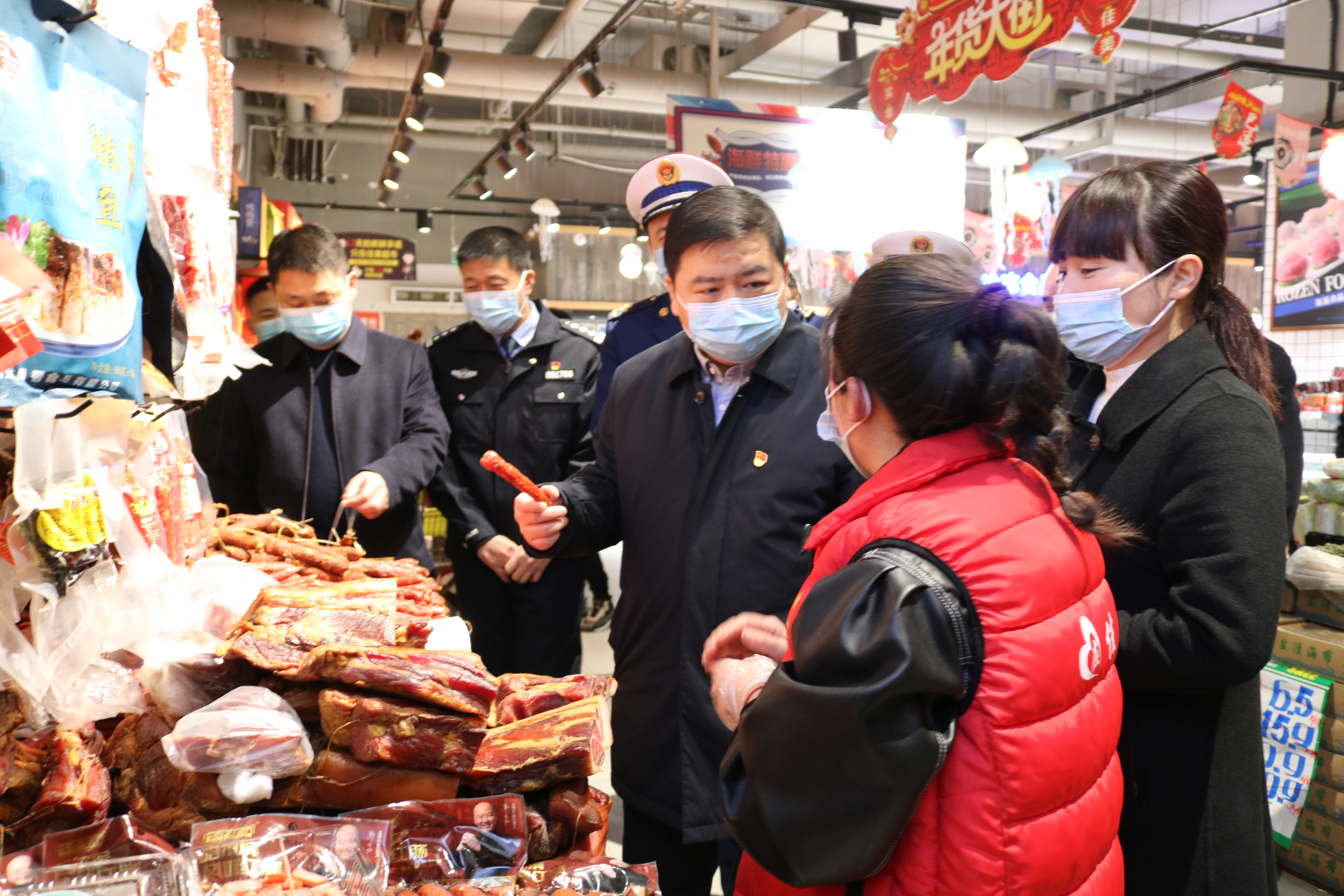 在佳美新時代超市,李剛來到食品區(qū)、生鮮區(qū)、綜合區(qū),了解節(jié)前物資供應(yīng)、商品價(jià)格、食品安全等情況。李剛指出,臨近春節(jié),采購年貨的人多,人員流通性大,疫情防控工作絲毫不能放松,要高度重視春節(jié)期間食品安全及市場供應(yīng)情況,加大監(jiān)管和巡查力度,加強(qiáng)監(jiān)測和調(diào)控手段,確保價(jià)格平穩(wěn)。同時要保持消防通道暢通、定期檢修消防器材、排除安全隱患,讓群眾過一個平安、愉快、祥和的節(jié)日。