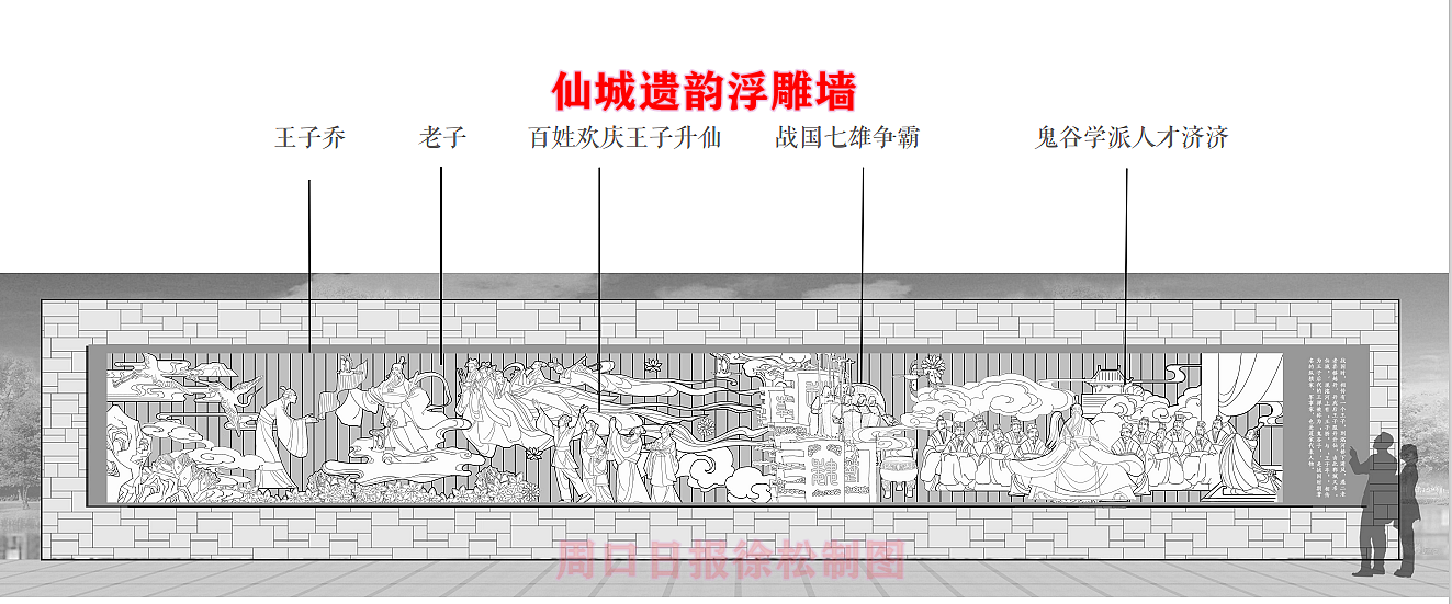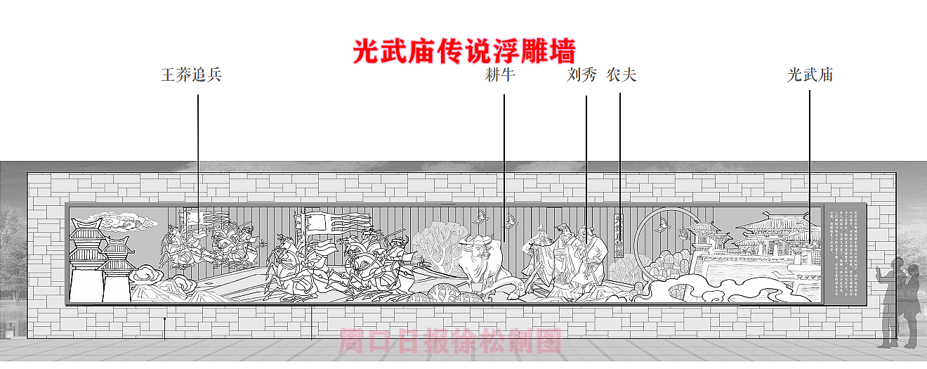 在縣委、縣政府綜合大樓東側(cè)的核心形象段,配合鄲城行政中心打造莊嚴(yán)、大氣氛圍的同時(shí),對(duì)鄲城歷史文化進(jìn)行了集中展示,包括鄲城的歷史沿革,鄲城的發(fā)展理念,歷史故事等。其中調(diào)水渠西側(cè)以現(xiàn)有人民廣場對(duì)應(yīng)的綠地為基礎(chǔ),設(shè)置了較多的歷史文化節(jié)點(diǎn)。如調(diào)水渠新華路橋頭北側(cè)的廉政文化廣場,講述了漢朝名臣汲黯的故事。汲黯為人耿直,直諫廷諍,親政愛民,敢于承擔(dān)責(zé)任,漢武帝劉徹稱其為“社稷之臣”。汲黯廉政廣場建設(shè)在此處更有著深遠(yuǎn)的意義,它一方面提醒老百姓要了解歷史、敬畏先賢,同時(shí)也激勵(lì)著鄲城縣的各級(jí)黨員干部要在習(xí)近平新時(shí)代中國特色社會(huì)主義思想引領(lǐng)下,“不忘初心、牢記使命、廉潔奉公、一心為民”。