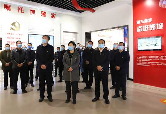 2月18日,春節(jié)過后上班第一天,市人大常委會副主任、鄲城縣委書記羅文閣,縣委副書記、縣長李全林帶領(lǐng)縣四個班子領(lǐng)導(dǎo)和部分縣直單位黨員干部,開展中共黨史學(xué)習(xí)教育活動,激勵全縣各級黨員干部不忘初心、牢記使命,在新時代不斷加強黨的建設(shè),更加緊密地團結(jié)在以習(xí)近平同志為核心的黨中央周圍,始終保持永不懈怠的精神狀態(tài)和一往無前的奮斗姿態(tài),振奮精神、堅定信心,銳意進(jìn)取、真抓實干,奮力譜寫全面建設(shè)社會主義現(xiàn)代化鄲城新篇章,以優(yōu)異成績迎接建黨100周年。
