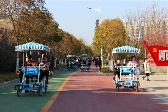 “今天真暖和?!?月19日,風(fēng)和日麗,周口國(guó)防教育園內(nèi)湖水蕩漾,四周的迎春花、梅花相繼開(kāi)放,吸引了許多市民帶著孩子前往踏春賞花,接受?chē)?guó)防教育。周口日?qǐng)?bào)·周道客戶(hù)端記者 高洪馳 攝