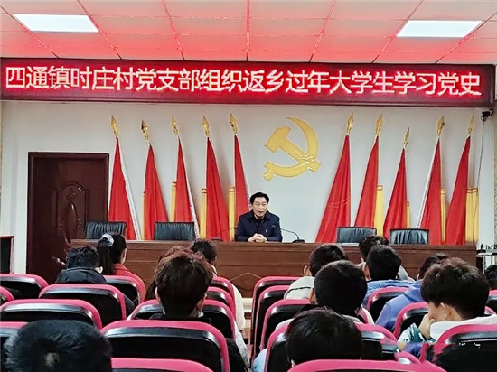 在當(dāng)日活動中,該村黨支部書記時興榮帶領(lǐng)返鄉(xiāng)大學(xué)生參觀時莊村中共黨史館,并為他們現(xiàn)場講解中國共產(chǎn)黨從一大到十九大的黨史歷程,隨后他們又一起前往時莊黨校進行學(xué)習(xí)?!爸拔覀儧]有學(xué)過黨史,也不太了解黨史,通過今天這一課,我們才真正了解到我黨的發(fā)展歷史。作為新時代的大學(xué)生,學(xué)業(yè)有成后,我們一定要報效祖國,一定要不忘初心、牢記使命,為中華民族的復(fù)興努力奮斗作出貢獻,堅決做到聽黨話、跟黨走、報黨恩?!眳⒓踊顒拥拇髮W(xué)生時曼銀說。