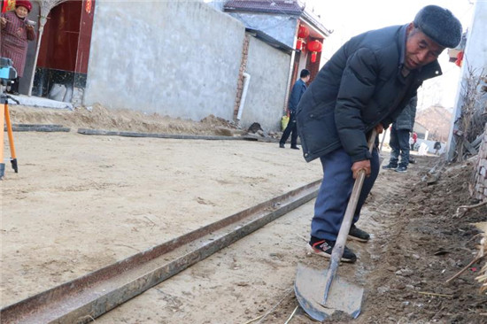 在宋河鎮(zhèn)劉橋村,支部書記張殿魁正在帶領村民平整路面?!拔覀兇宓闹鹘值缼啄昵熬屯怂嗦?,但是部分小巷子因經費不足一直沒有修通?!睆埖羁f,年初鎮(zhèn)黨委組織召開全鎮(zhèn)在外返鄉(xiāng)人士優(yōu)秀代表座談會,得到了在外鄉(xiāng)賢的積極支持,部分鄉(xiāng)賢捐款,帶動村內群眾籌集費用,現(xiàn)在水泥路即將覆蓋全村大街小巷。