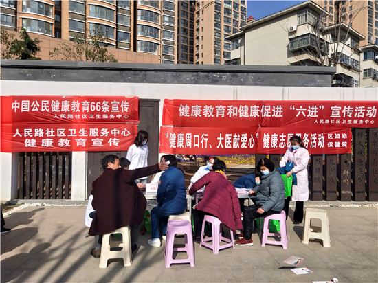 3月2日下午,在大慶路與七一路交叉口東北角的街頭游園內(nèi),人民路社區(qū)衛(wèi)生服務(wù)中心在這里開展健康教育和健康促進(jìn)“六進(jìn)”宣傳活動。活動現(xiàn)場,量血壓、測血糖、免費體檢等服務(wù),讓周邊居民體會到滿滿的關(guān)懷。
