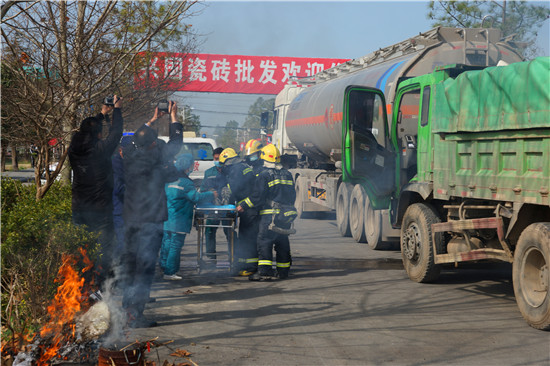 據(jù)介紹,通過本次演練,河南省公安交警總隊、周口市公安局、項城市委市政府進(jìn)一步檢驗了對危險品運輸車事故的應(yīng)急反應(yīng)和處置能力及省際?;方煌ㄊ鹿示仍幹玫目茖W(xué)性、適用性和可操作性,促進(jìn)了應(yīng)急搶險工作的規(guī)范化、常態(tài)化,加強了交警、應(yīng)急、環(huán)保、消防、醫(yī)療、交通、搶險救援等各部門協(xié)作聯(lián)動,提高了應(yīng)急管控水平,取得了良好的社會效果。②10