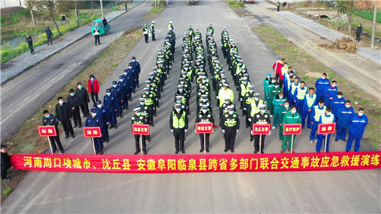 為進(jìn)一步健全完善涉及危險品運輸車事故應(yīng)急處置和搶險救援機制,加強省際國省道安全管控,提高突發(fā)事件應(yīng)急處置和救援能力,經(jīng)共同研究決定,3月3日上午,河南省公安廳交警總隊組織周口市公安局交通管理支隊和安徽阜陽市公安局交通管理支隊聯(lián)合兩地交警、環(huán)保、消防、施救、120急救中心等多部門在兩市交界處舉行道路交通事故應(yīng)急救援聯(lián)合演練,演練內(nèi)容包括接處警、交通管制、環(huán)境監(jiān)測、營救被困人員、處置危化品、事故現(xiàn)場勘察、事故現(xiàn)場清理等內(nèi)容。