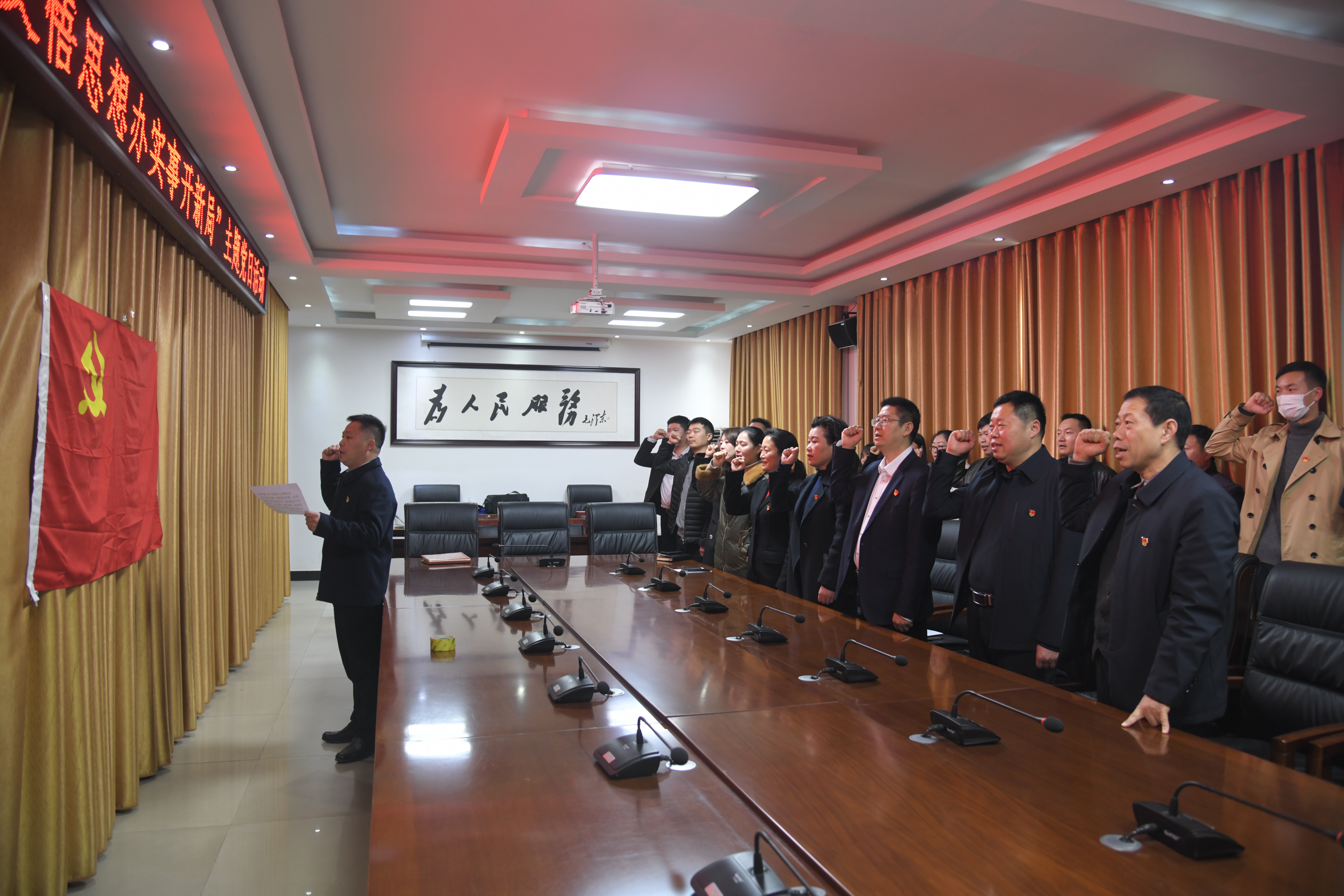 會(huì)前,李本磊和全體人員一起重溫入黨誓詞。